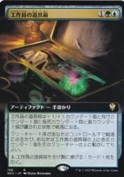工作員の道具箱は+1/+1カウンター1個と飛行カウンター1個と接死カウンター1個と盾カウンター1個が置かれた状態で戦場に出る。これはダメージを受けるか破壊されるなら、代わりにこれの上から盾カウンター1個を取り除く。)