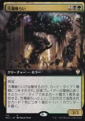 汚濁喰らいが攻撃するたび、カードタイプ1種類につきそれぞれ、防御プレイヤーの墓地にありそのカードタイプであるカード最大1枚を追放する。