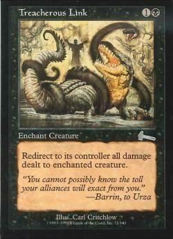 エンチャントされているクリーチャーに与えられるすべてのダメージは、代わりにそれのコントローラーに与えられる。