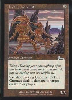 チクタク・ノームを生け贄に捧げる:クリーチャー1体かプレイヤー1人を対象とする。チクタク・ノームはそれに1点のダメージを与える。