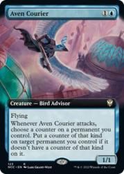 エイヴンの急使が攻撃するたび、あなたがコントロールしているパーマネント1つを対象とする。あなたがコントロールしているパーマネント1つの上にあるカウンター1個を選ぶ。対象にしたバーマネントの上にその選ばれた種類のカウンターがないなら、それの上にその種類のカウンター1個を置く。
