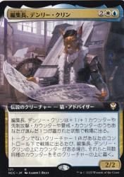 編集長、デンリー・クリンは+1/+1カウンターや先制攻撃・カウンターや警戒・カウンターのうちあなたが選んだ1つが置かれた状態で戦場に出る。