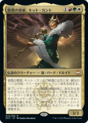 殺戮の歌姫、キット・カントが戦場に出たとき、白の1/1の市民・クリーチャー・トークン1体を生成する。