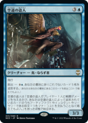 空道の盗人は「空道の盗人がプレイヤー1人に戦闘ダメージを与えるたび、あなたは空道の盗人によって追放されて いるカードのうちアーティファクトやインスタントやソー サリーである呪文1つをマナ・コストを支払うことなく唱えてもよい。」を持った状態で脱出する。
