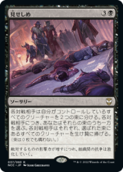 各対戦相手は自分がコントロールしているすべてのクリーチャーを2つの束に分ける。各対戦相手につき、あなたはそれらの束のうち一方を選ぶ。各対戦相手はそれぞれ、選ばれた束にあるすべてのクリーチャーを生け贄に捧げる。 (束は0枚でも構わない。)