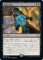 暗号 (その後、あなたはあなたがコントロールしているクリーチャー1体に暗号化した状態で、この呪文カー ドを追放してもよい。そのクリーチャーがプレイヤー1人に戦闘ダメージを与えるたび、それのコントローラーは、暗号化されているこのカードのコピーを、マナ・ コストを支払うことなく唱えてもよい。)