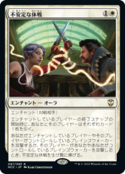 あなたがエンチャントしているプレイヤーかそのプレイヤーがコントロールしているプレインズウォーカーを攻撃するか、そのプレイヤーがあなたやあなたがコントロールしているプレインズウォーカーを攻撃したとき、不安定な休戦を生け贄に捧げる。
