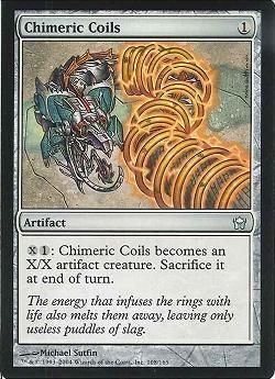 (X)(1):キマイラ・コイルは、X/Xのアーティファクト・クリーチャーになる。ターン終了時に、それを生け贄に捧げる。
