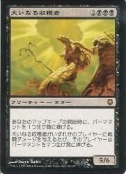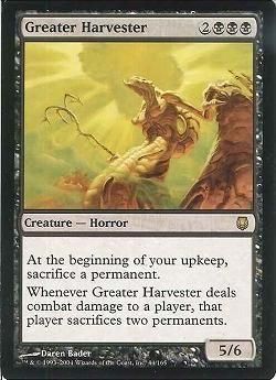 大いなる収穫者がプレイヤーに戦闘ダメージを与えるたび、そのプレイヤーはパーマネントを2つ生け贄に捧げる。