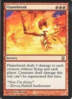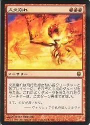 火炎崩れは、すべての飛行を持たないクリーチャーとすべてのプレイヤーに3点のダメージを与える。これによりダメージを与えられたクリーチャーは、このターン再生できない。