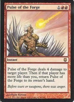 プレイヤー1人を対象とする。溶鉱炉の脈動はそのプレイヤーに4点のダメージを与える。その後そのプレイヤーのライフがあなたより多い場合、溶鉱炉の脈動をオーナーの手札に戻す。