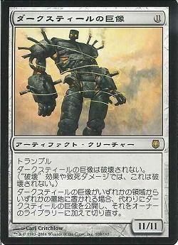 ダークスティールの巨像がいずれの領域からでも墓地に置かれる場合、代わりにダークスティールの巨像を公開し、それをオーナーのライブラリーに加えて切り直す。